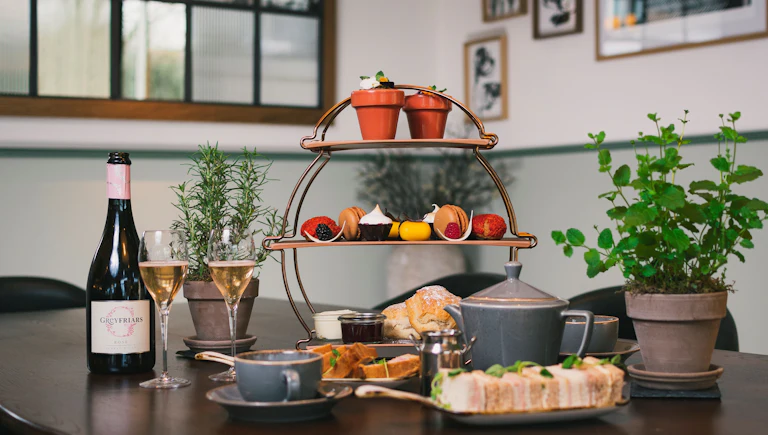 Enjoy an Afternoon Tea for Two guests with a glass of English Sparkling Wine in OXBO Kitchen at Hilton Reading. Indulge in delicious sandwiches and savoury bites, homemade scones and cakes and a selection of Taylors of Harrogate Teas.